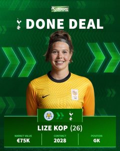 Tottenham Hotspur has completed the signing of highly-rated goalkeeper Lize Kop in a deal worth over £65 million, marking a significant move in the club’s bid to bolster its squad and improve its fortunes on the field.