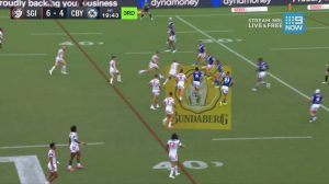 However, in the 50th minute, the Dragons again began to find the upper hand. Ben Hunt’s kicking game was a weapon, repeatedly forcing the Bulldogs into their own half. On the back of sustained pressure, the Dragons eventually broke the deadlock when Hunt’s precision kick into the in-goal area was pounced on by forward Francis Molo, who grounded the ball to score. The try gave the Dragons an 18-12 lead.