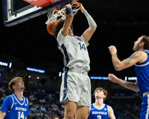 His ability to control the game from the point guard position, while also contributing as a scorer and rebounder, has made him an invaluable asset to head coach Micah Shrewsberry’s system.